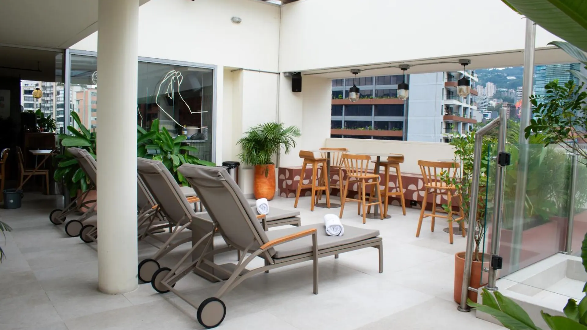 The 49 rooms at hotel include an adjoining terrace and a dressing room. Some of the rooms feature exclusive decor furnished with a writing desk. Guests can make use of a mini fridge bar, tea and coffee-making facilities, and relax with high-speed internet and a flat-screen TV with satellite channels. The smart bathrooms come with dressing gowns and shower caps. Enjoy views of the city, while staying at this Medellin hotel.